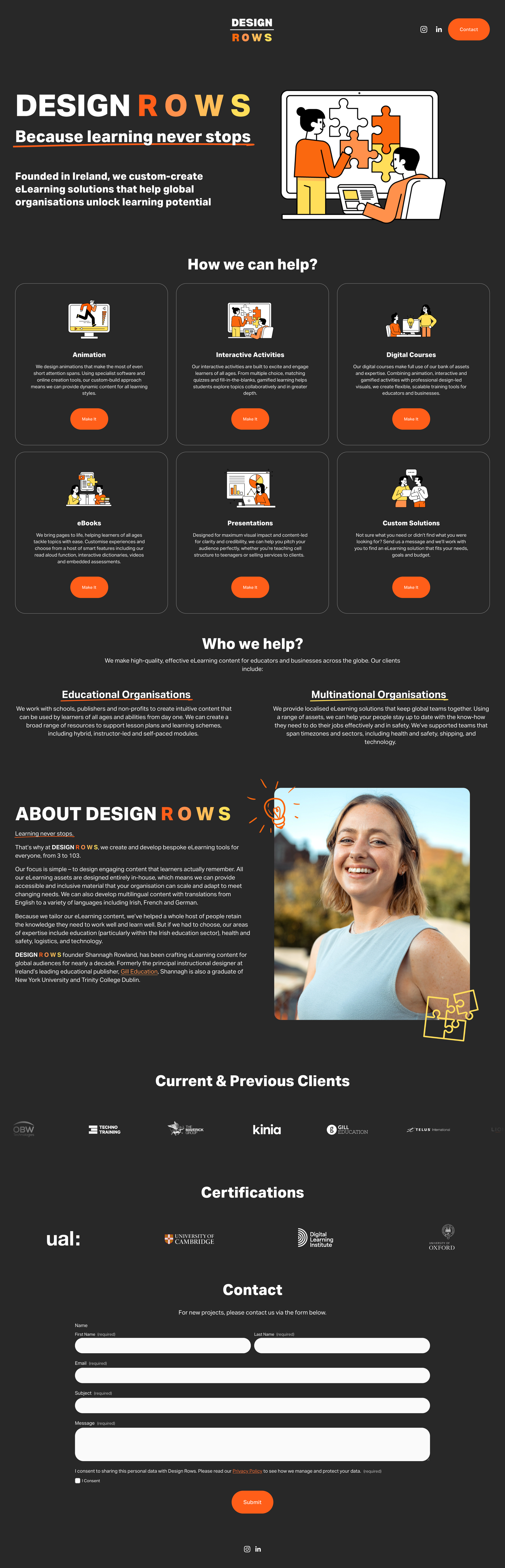 Design Rows, an eLearning design studio founded in Ireland, approached us to design and build a new website that clearly communicated their expertise, services, and global reach.